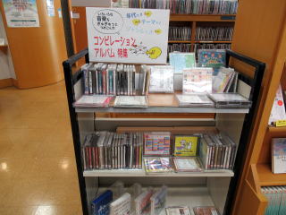 視聴覚資料コーナーは、1枚のCDアルバムにいろんな曲が詰め込まれたコンピレーションアルバムを集めています。